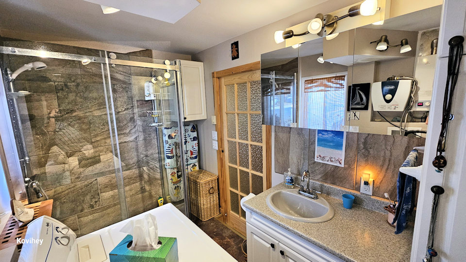 Chauffe-eau 40 gallons, frigo, comptoir avec évier, table en stainless, entrée électrique 100 ampères