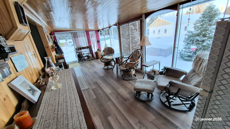 - 48′ X 16′, agrémentée d’une lumineuse véranda 28′ X 40′