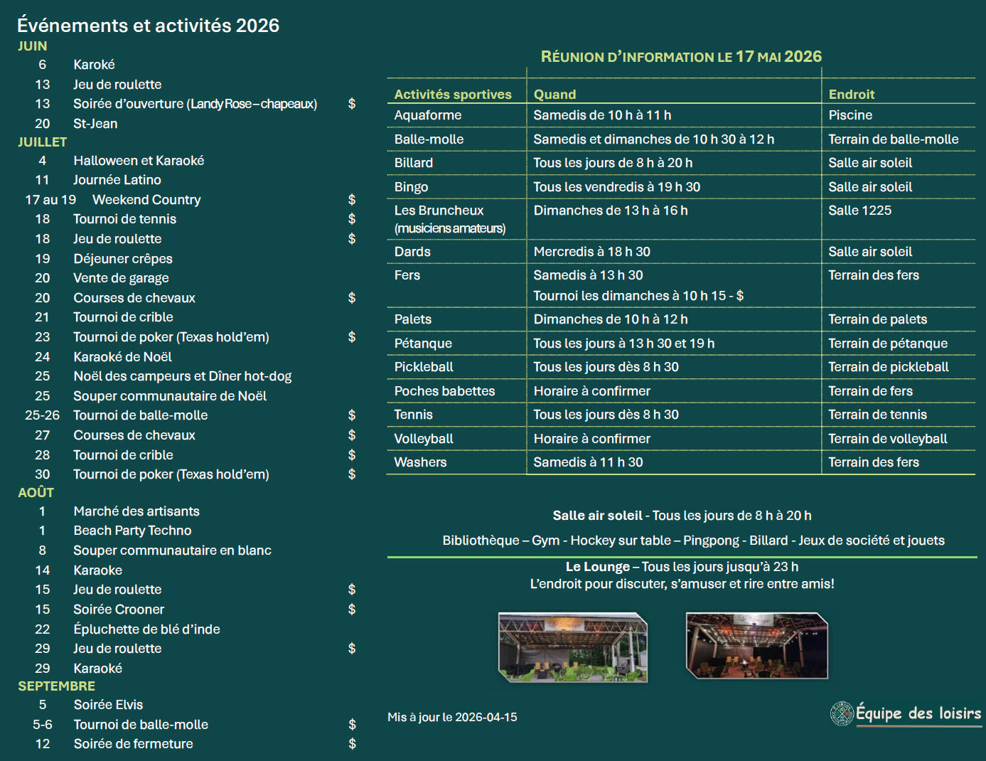 Les activités 2026